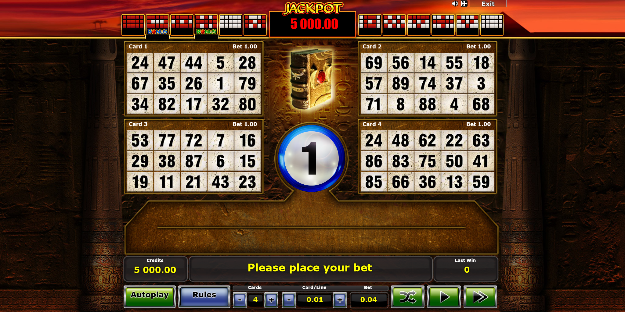 Appena caricato il gioco, il giocatore si troverà in un ambiente alquanto insolito: la Book of Ra sembra diversa, sullo schermo al posto dei canonici rulli e simboli, avrà 4 cartelle del bingo con 90 numeri.
